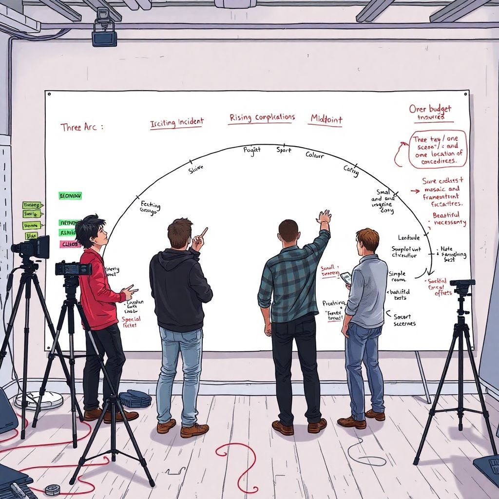 Еще один рабочий вариант для минимальных ресурсов — ограниченная структура: вся история происходит за один день или в одном месте. В этом случае сюжетная арка строится вокруг изменения динамики отношений и раскрытия тайн, а не вокруг смены масштабных событий. Вы, по сути, используете «давление времени» и клаустрофобию пространства вместо дорогих трюков и массовки. Плюс — логистически просто и дешево. Минус — сценарий должен быть особенно плотным по конфликту, иначе фильм превращается в затянутое театральное чтение без внутреннего прогресса.