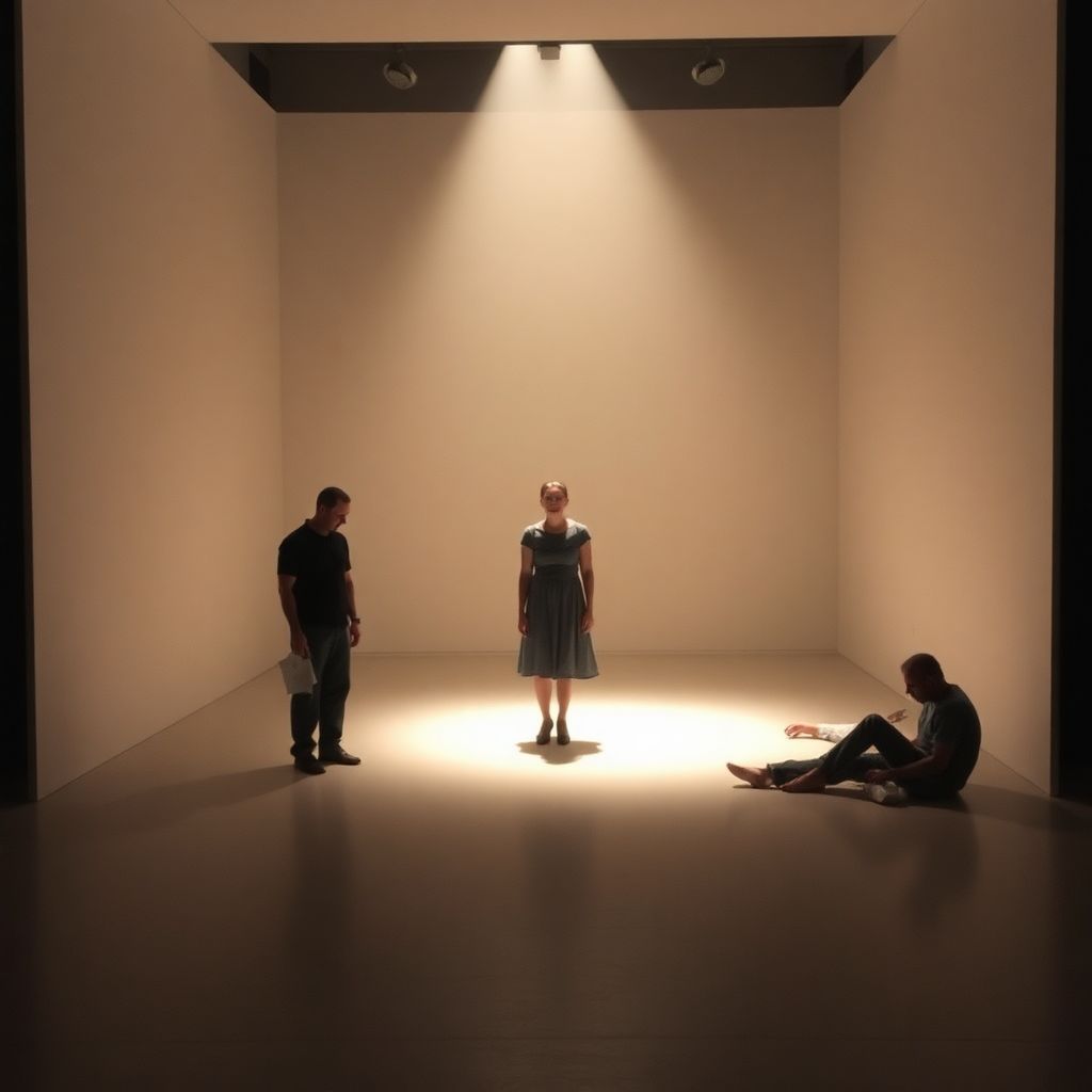 - Визуальный театр и инсталляционные спектакли. Сцена строится как последовательность живых картин: статичные и медленно трансформирующиеся мизансцены, пластику актёров можно мыслить как движущиеся скульптуры. Приёмы: медленный темп, минимальный текст, точная работа со светом.