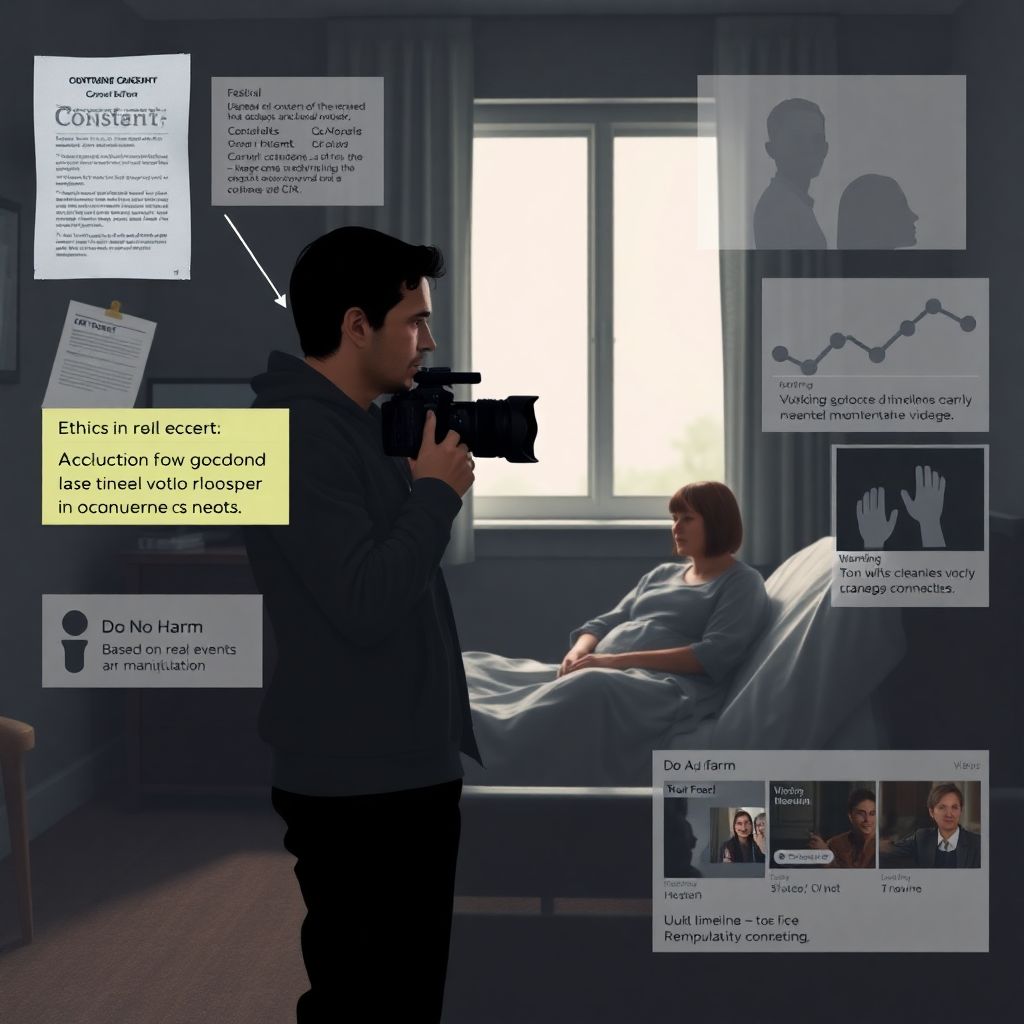На практике самый частый этический конфликт в авторском кино возникает не на монтаже, а уже на стадии съёмки. Представим типичную ситуацию: вы снимаете маму, у которой ребёнок в хосписе. Она устала, вымотана, но соглашается на интервью, потому что верит, что фильм «может кому-то помочь». С точки зрения драматургии вам нужны сильные эмоции, кульминация, слёзы, признание страха смерти — без этого канал не возьмёт кино в эфир, а фестивальная комиссия пройдёт мимо. И вот режиссёр задаёт всё более жёсткие вопросы, увеличивает крупность, просит повторить фразу «для дубля». Формально герой согласен, но по сути идёт давление. В практике европейской документалистики всё чаще применяется правило «двойного согласия»: сначала человек соглашается участвовать в проекте, а потом отдельно подтверждает согласие на использование конкретных сцен после просмотра чернового монтажа. В фильме канадского режиссёра Сары Полли Stories We Tell именно так и выстраивалась работа с родственниками — они могли попросить убрать куски, в которых чувствовали себя уязвлёнными, и это не считалось цензурой, а частью честного договора.